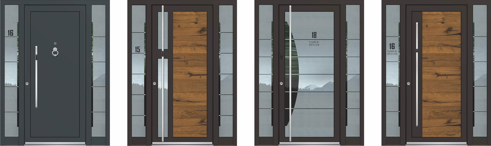 Aus einer Auswahl von über 400 Modellen lässt sich jede Tür individuell konfigurieren – bis ins kleinste Detail. Farben, Oberflächen, Verglasungen, Griffe und technische Ausstattungen können exakt auf Ihre Wünsche und die Architektur Ihres Hauses abgestimmt werden.